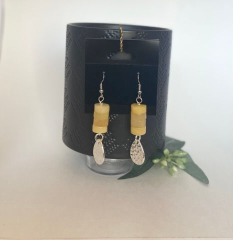 Silver Loop Earrings with Howlite Wrapped Beads and Drop