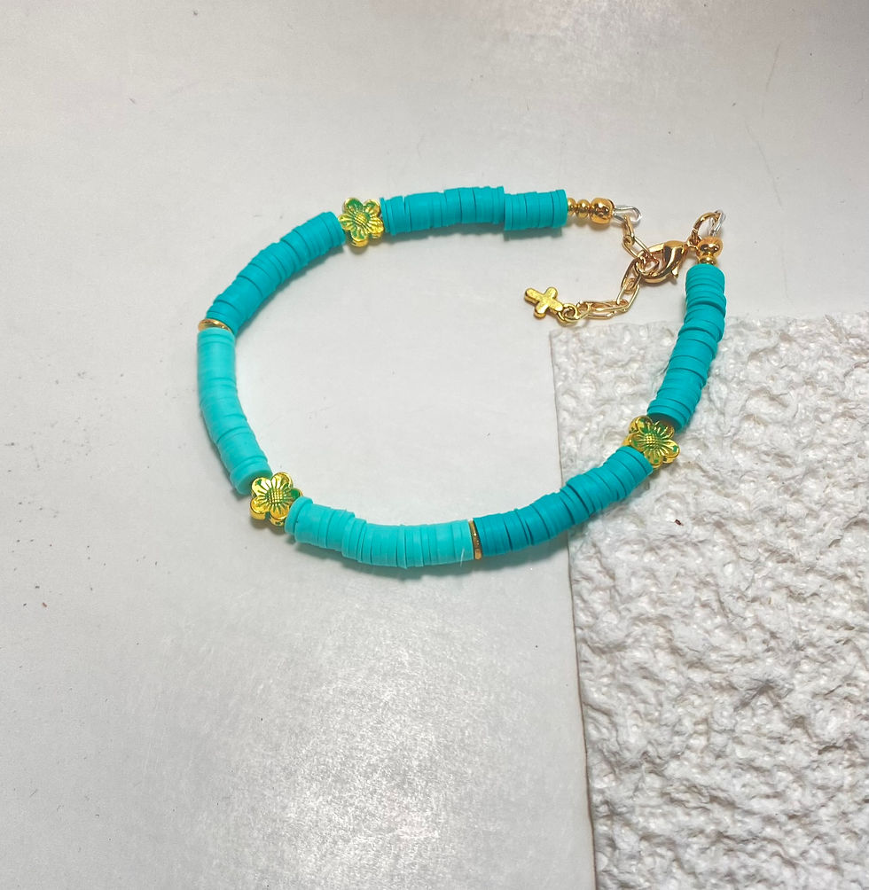 Chunky Leather Cord Friendship Bracelet with Blue Crystals & Pearl Accents